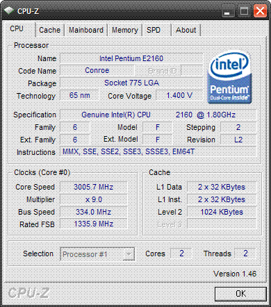 Результат разгона Intel Pentium Dual-Core (Conroe-1M)