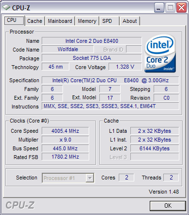 Результат разгона Intel Core 2 Duo (Wolfdale)