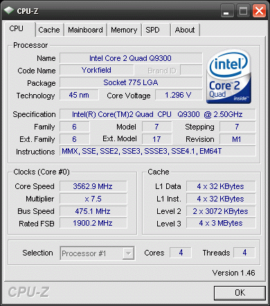Результат разгона Intel Core 2 Quad (Yorkfield)