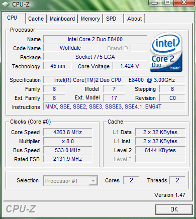 Результат разгона Intel Core 2 Duo (Wolfdale)