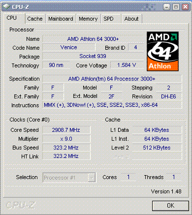 | Процессор (ядро) | AMD Athlon 64 (Venice) |