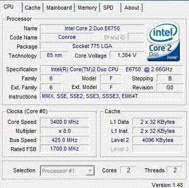 | Разгон, максимально стабильная частота (FSB x Ratio) | 3400 (425 x 8.0) |