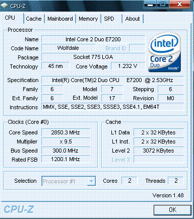 | Разгон, максимально стабильная частота (FSB x Ratio) | 2850 (300 x 9.5) |