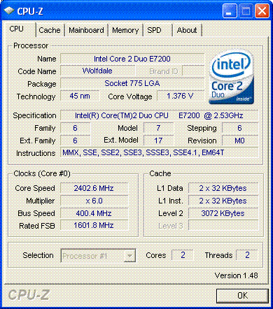 Результат разгона Intel Core 2 Duo (Wolfdale)