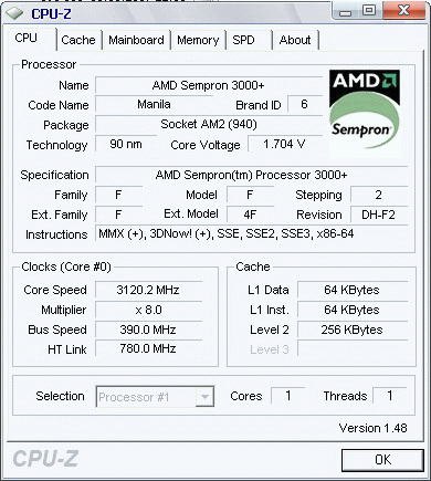 | Процессор (ядро) | AMD Sempron (Manila) |