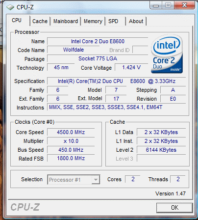 Результат разгона Intel Core 2 Duo (Wolfdale)