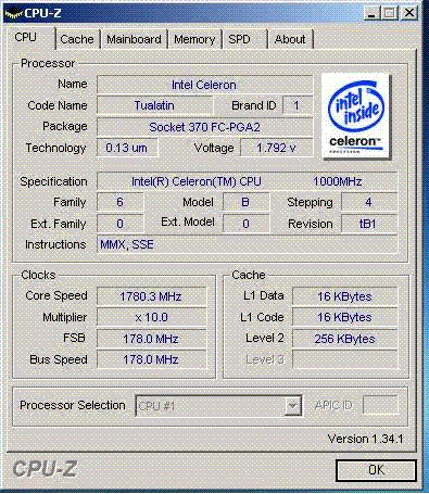 Результат разгона Intel Celeron (Tualatin)