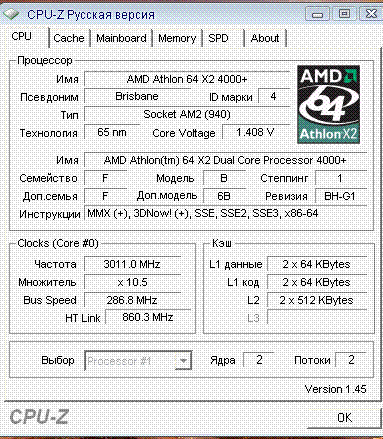 | Процессор (ядро) | AMD Athlon 64 X2 (Brisbane) |