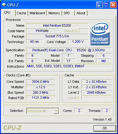 Результат разгона Intel Pentium Dual-Core (Wolfdale-2M)