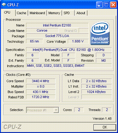Результат разгона Intel Pentium Dual-Core (Conroe-1M)