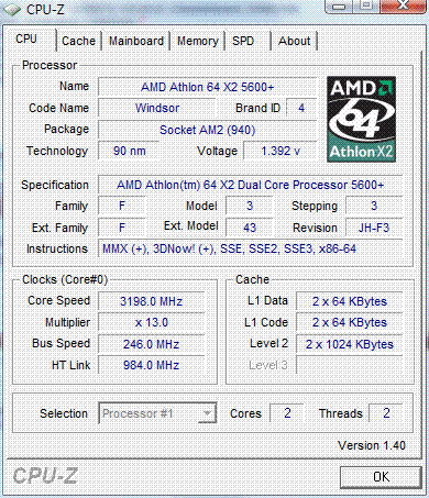 | Процессор (ядро) | AMD Athlon 64 X2 (Windsor) |
