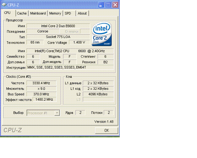 | Процессор (ядро) | Intel Core 2 Duo (Conroe) |