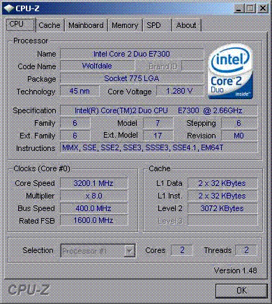 Результат разгона Intel Core 2 Duo (Wolfdale)