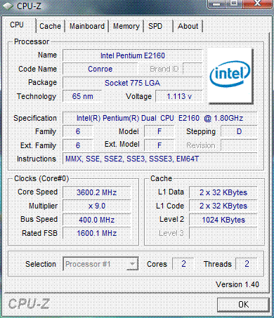| Процессор (ядро) | Intel Pentium Dual-Core (Conroe-1M) |