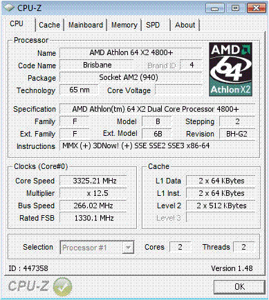 Результат разгона AMD Athlon 64 X2 (Brisbane)