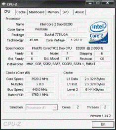 | Разгон, максимально стабильная частота (FSB x Ratio) | 3520 (440 x 8.0) |