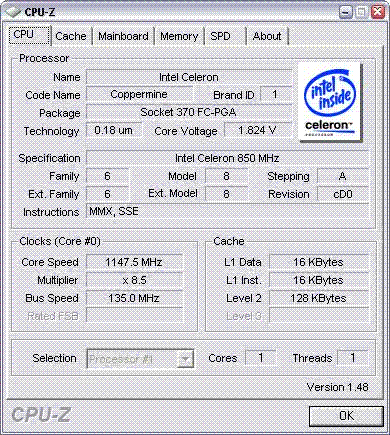 | Процессор (ядро) | Intel Celeron (Coppermine-128) |