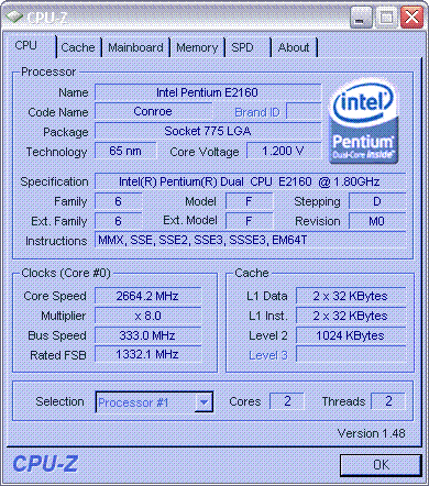 Результат разгона Intel Pentium Dual-Core (Conroe-1M)