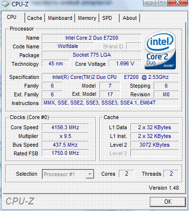 Результат разгона Intel Core 2 Duo (Wolfdale)