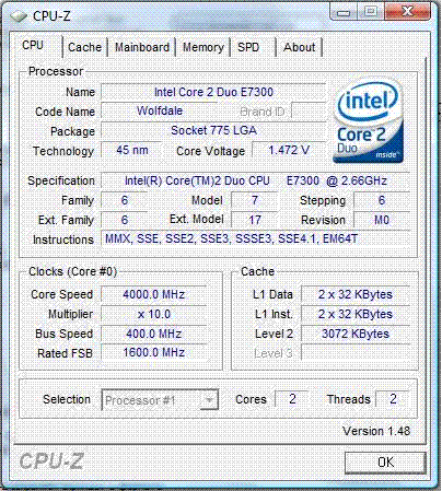 Результат разгона Intel Core 2 Duo (Wolfdale)