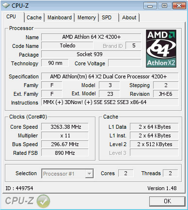 | Процессор (ядро) | AMD Athlon 64 X2 (Manchester) |