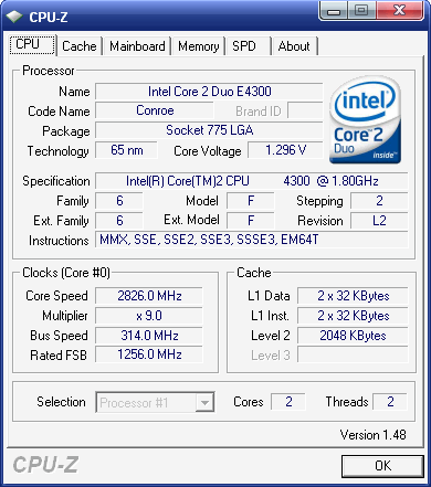 | Разгон, максимально стабильная частота (FSB x Ratio) | 2826 (314 x 9.0) |