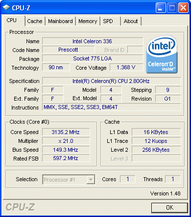 | Процессор (ядро) | Intel Celeron D (Prescott-256) |