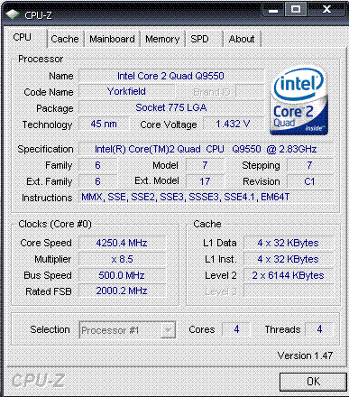 Результат разгона Intel Core 2 Quad (Yorkfield)