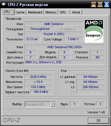 Результат разгона AMD Sempron (Thoroughbred)