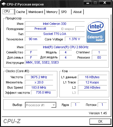 | Процессор (ядро) | Intel Celeron D (Prescott-256) |