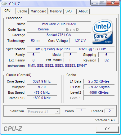 | Разгон, максимально стабильная частота (FSB x Ratio) | 3325 (475 x 7.0) |