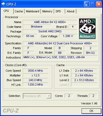 Результат разгона AMD Athlon 64 X2 (Brisbane)