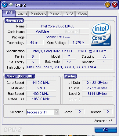 Результат разгона Intel Core 2 Duo (Wolfdale)