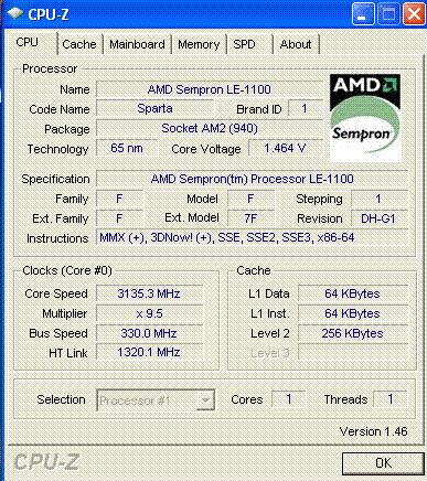 Результат разгона AMD Sempron (Sparta)