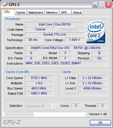 Результат разгона Intel Core 2 Duo (Conroe)