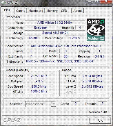 | Процессор (ядро) | AMD Athlon 64 X2 (Brisbane) |