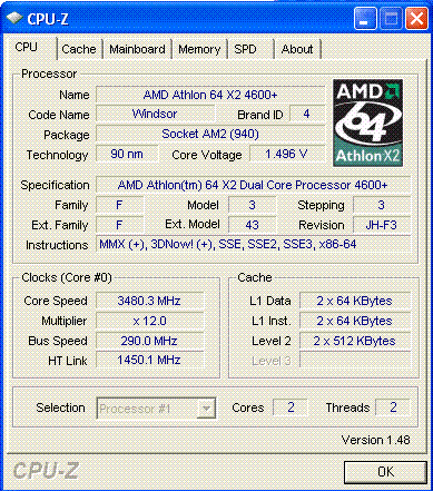 Результат разгона AMD Athlon 64 X2 (Windsor)