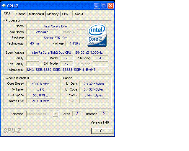 Результат разгона Intel Core 2 Duo (Wolfdale)