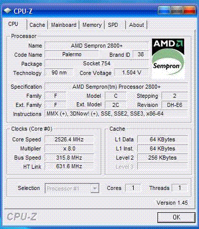| Процессор (ядро) | AMD Sempron (Palermo) |