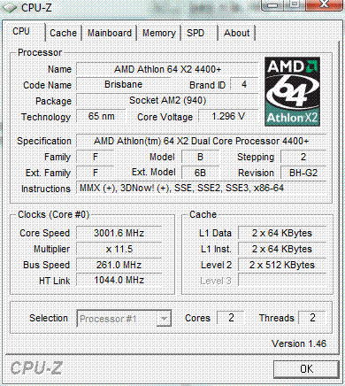 | Процессор (ядро) | AMD Athlon X2 (Brisbane) |