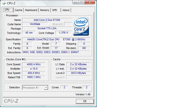 Результат разгона Intel Core 2 Duo (Wolfdale)