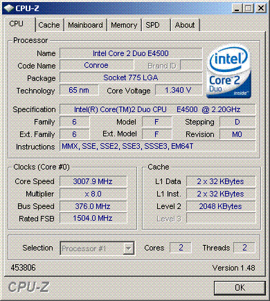 Результат разгона Intel Core 2 Duo (Conroe)