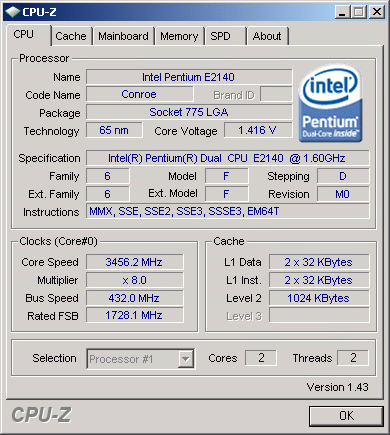 Результат разгона Intel Pentium Dual-Core (Conroe-1M)