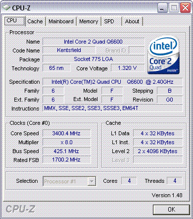 Результат разгона Intel Core 2 Quad (Kentsfield)