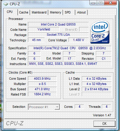 Результат разгона Intel Core 2 Quad (Yorkfield)
