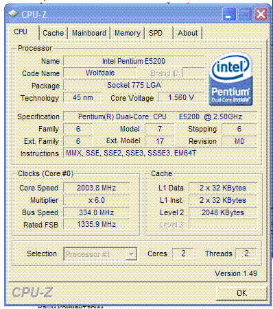 | Процессор (ядро) | Intel Pentium Dual-Core (Wolfdale-2M) |