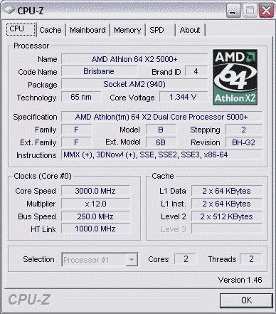 Результат разгона AMD Athlon X2 (Brisbane)
