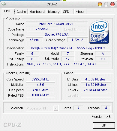 Результат разгона Intel Core 2 Quad (Yorkfield)