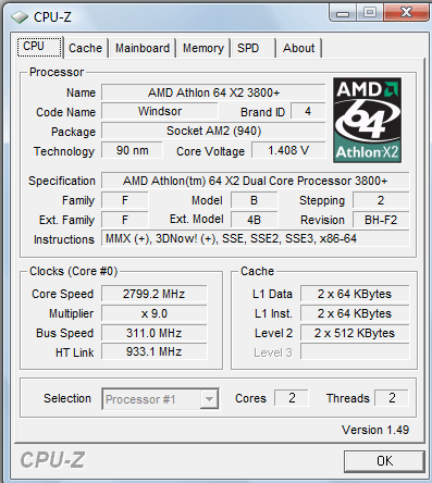 | Процессор (ядро) | AMD Athlon 64 X2 (Windsor) |