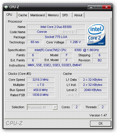 Результат разгона Intel Core 2 Duo (Conroe-2M)